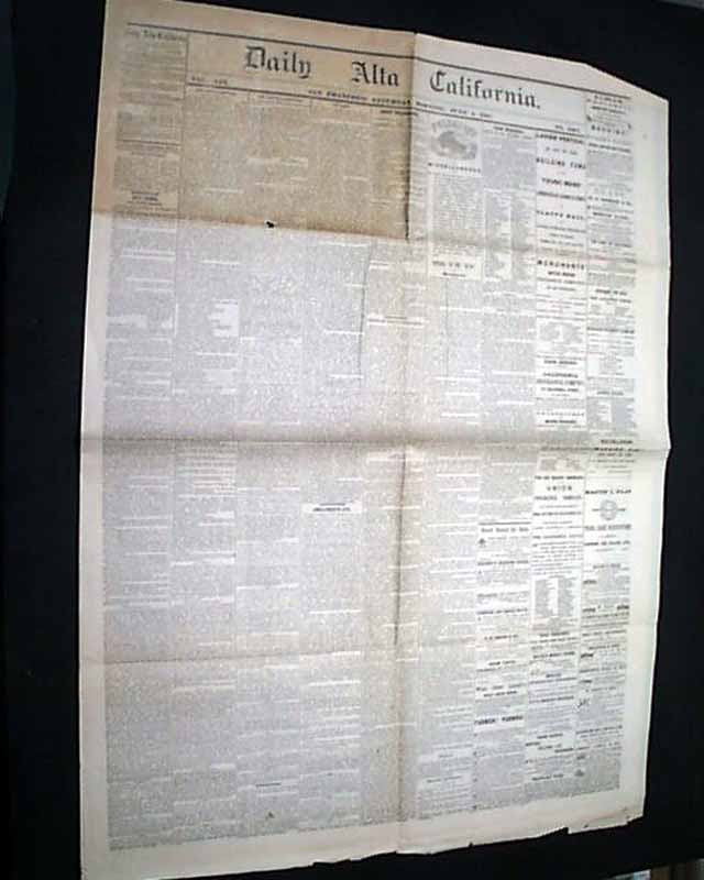 DAILY ALTA CALIFORNIA, San Francisco, June 1, 1867 The very first title in the Golden State was the "Californian" begun in 1846, followed the next year by the "California Star". These two titles merged and in 1849 the combined enterprise was called the "Alta California", becoming a daily in July. It became the first successful newspaper in California, lasting until 1891.