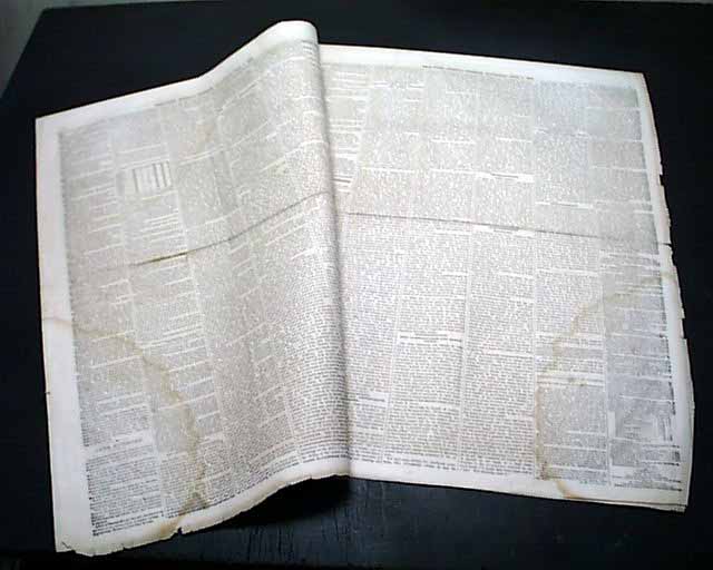 Eight pages, never bound nor trimmed so it folds out to one large sheet, light damp stain to a corner, good condition.