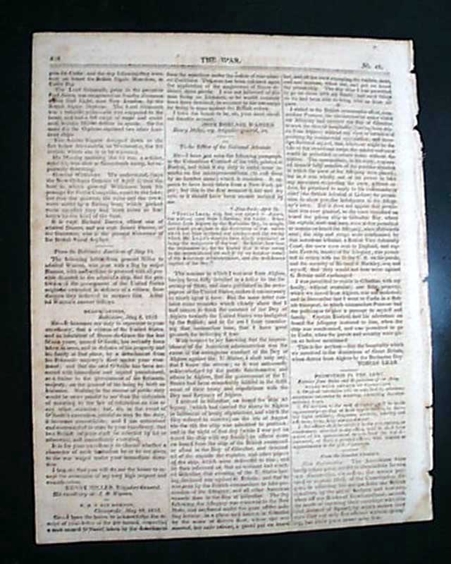 This is a fascinating, short-lived newspaper, having begun in 1812 with the exclusive purpose of reporting on the War of 1812 (hence the title). When the war ended, so did this newspaper.