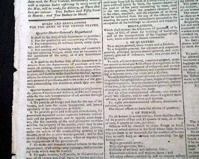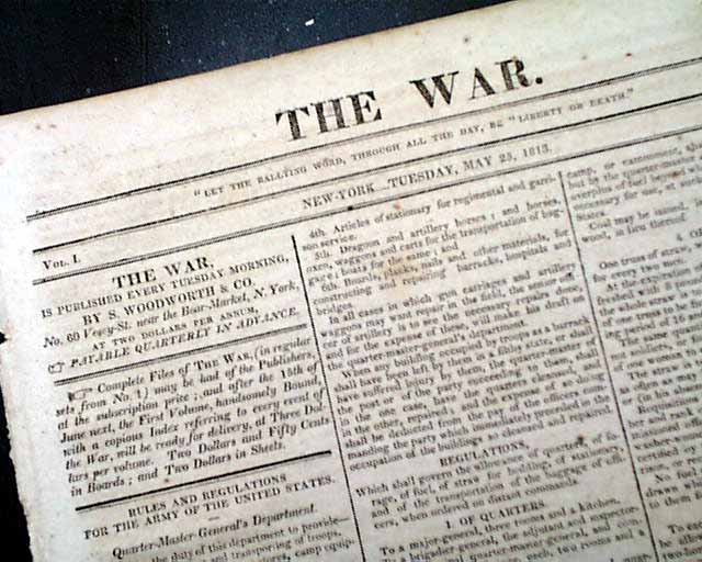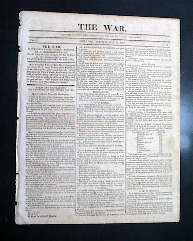 THE WAR, New York, May 25, 1813  The entire front page is taken up with: "Rules and Regulations for the Army of the United States" providing some interesting reading.