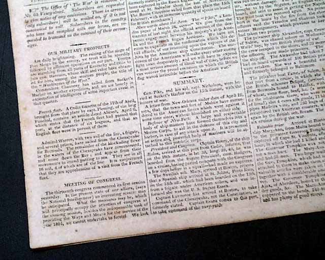 This is a fascinating, short-lived newspaper, having begun in 1812 with the exclusive purpose of reporting on the War of 1812 (hence the title). When the war ended, so did this newspaper.