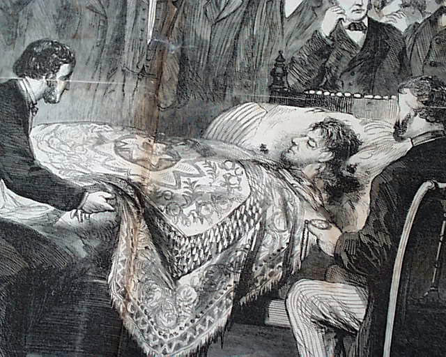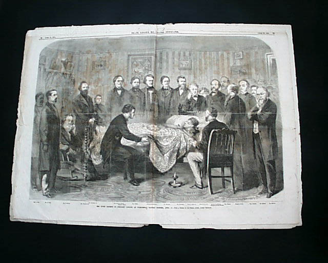 The centerfold is another dramatic print captioned: "The Dying Moments of President Lincoln At Washington..." which is quite displayable.