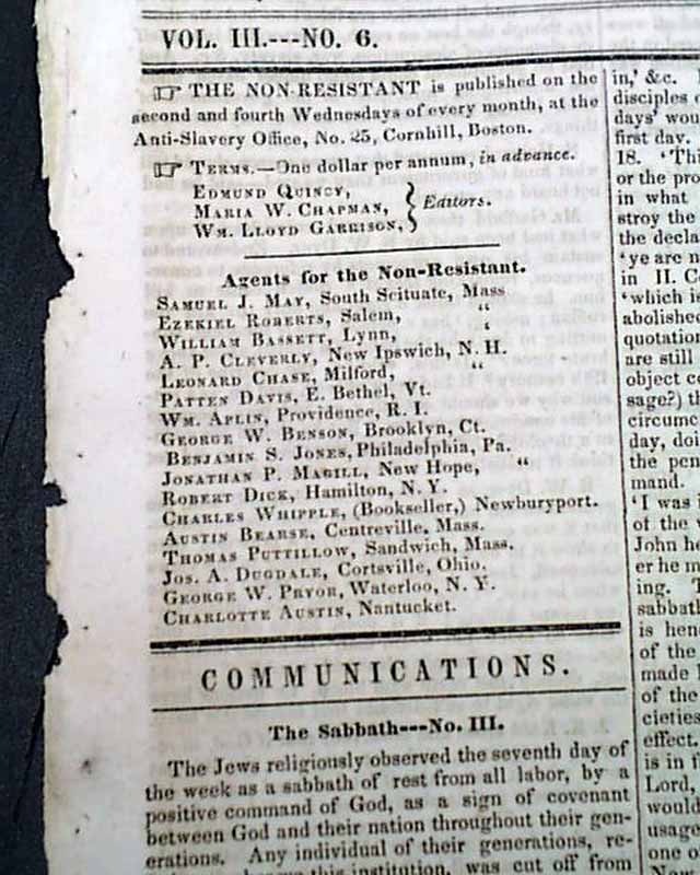 Uncommon anti-slavery newspaper, but more: focused on non-resistance...