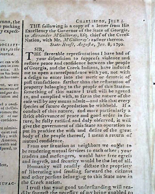 Page 2 also has a letter from the governor of Georgia to Alexander M'Gillivrary, chief of the Creek Indian Nation, with his response signed: Alex. M'Gillivray.