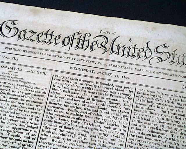 Considered by many as the most significant newspaper of the 18th century, as the Gazette was the mouthpiece of all matters political. Most pronouncements from Congress & the President were printed first in this newspaper.