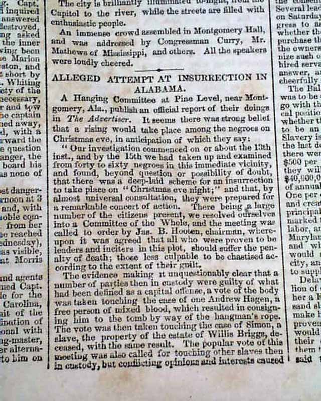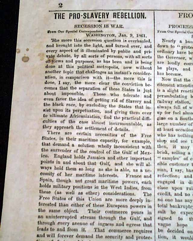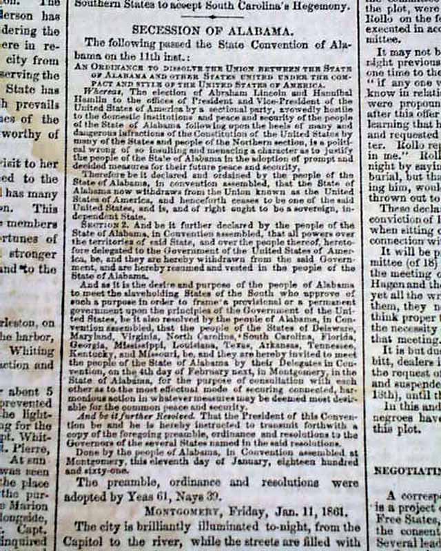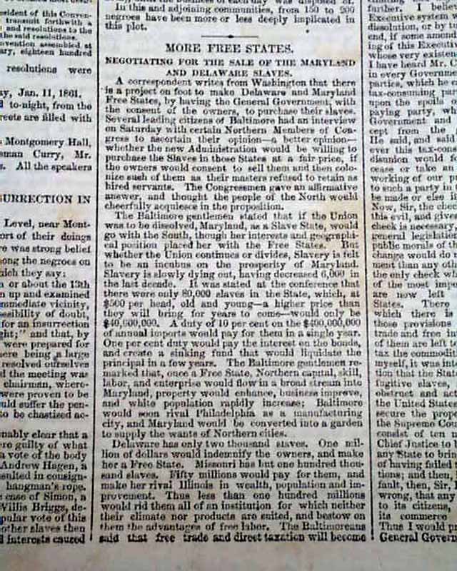 Also: "More Free States - Negotiating For the Sale of the Maryland and Delaware Slaves" "Secession of Alabama" "After the First Battle" is more on the Star of the West; "The State of Feeling in Charleston" plus much, much more.