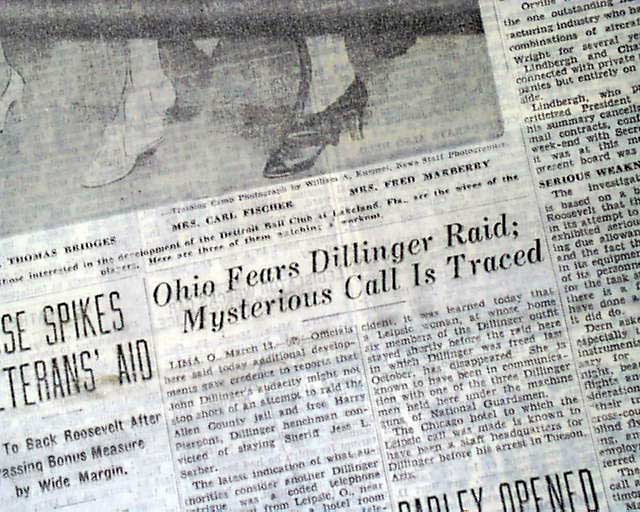 The front page has a two column heading: "Ohio Fears Dillinger Raid; Mysterious Call IS Traced"