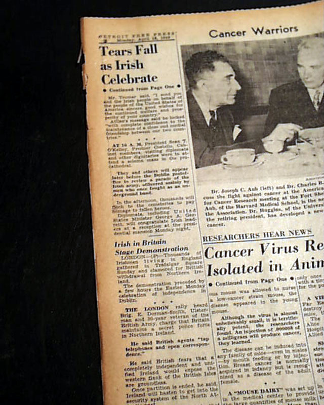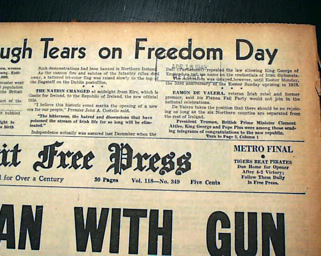 The very top of the front page has a banner heading: "Irish Eyes Smile Through Tears on Freedom Day" (see images)