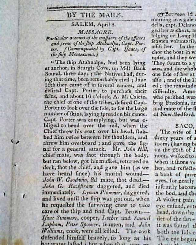 Page 3 has much detail on a: "Massacre - Particular Account of the Massacre of the Officers & Crew of the Ship Atahualpa, Capt. Porter" about which more is found on the internet.