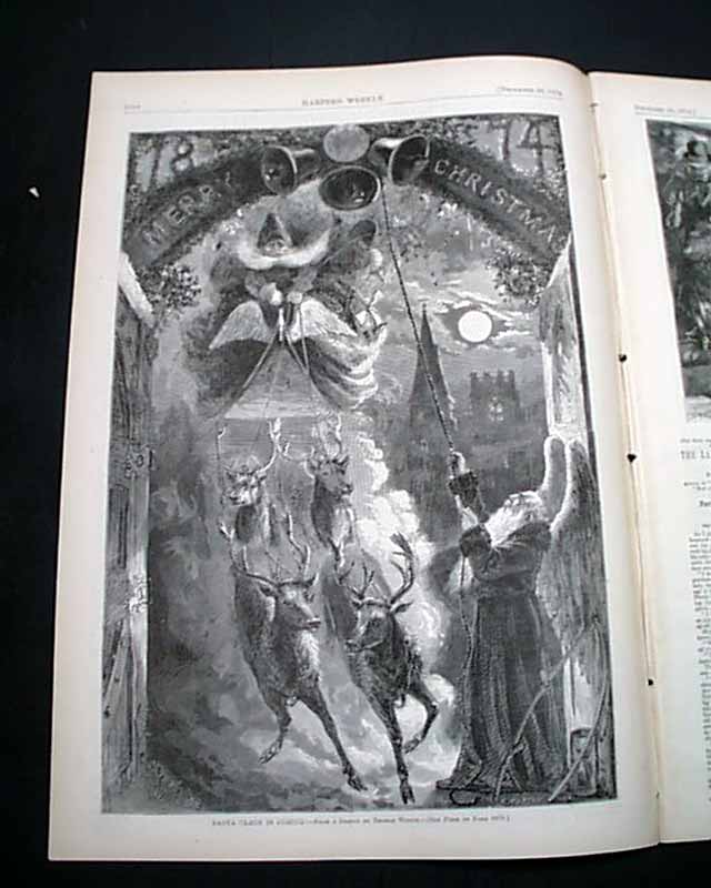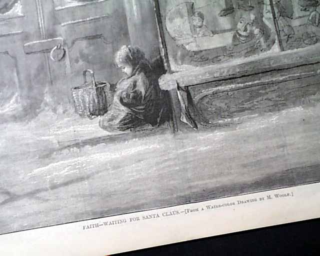 HARPER'S WEEKLY, New York, Dec. 26, 1874  The full front page is a print: "Faith--Waiting for Santa Claus" showing a young girl waiting at the door of a toy store.