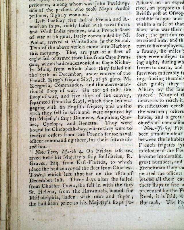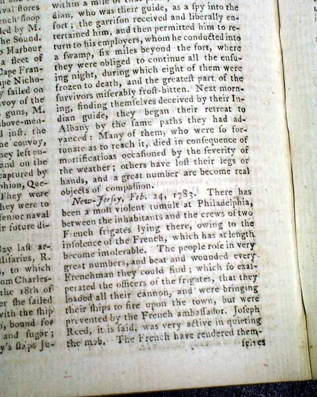 Another item notes in part: "...Sir Guy Carleton had just issued a proclamation inviting those Americans who had quitted their houses there to return & repossess them...at New York. That the British garrison were preparing to evacuate the place, and that the soldiers particularly Hessians, departed in great numbers."