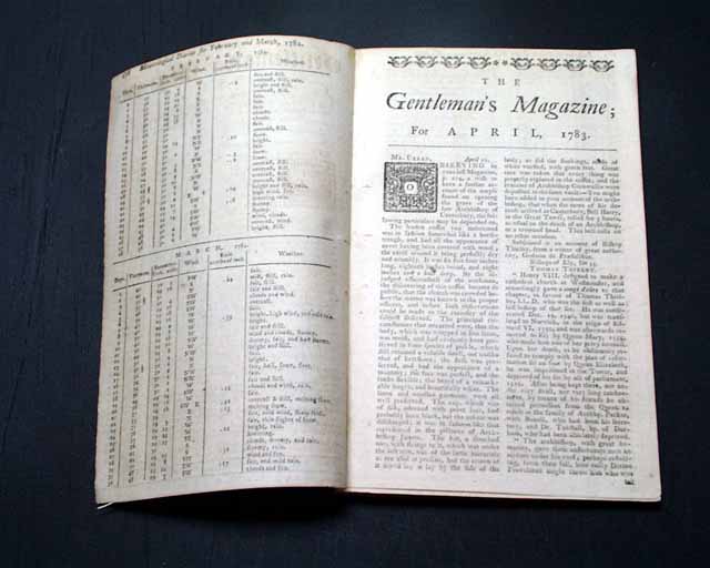 A very nice magazine from the "mother country" at the end of the Revolutionary War with a wide range of varied content. This was the first periodical to use the word "magazine" in its title, having begun in 1731 and lasting until 1907.