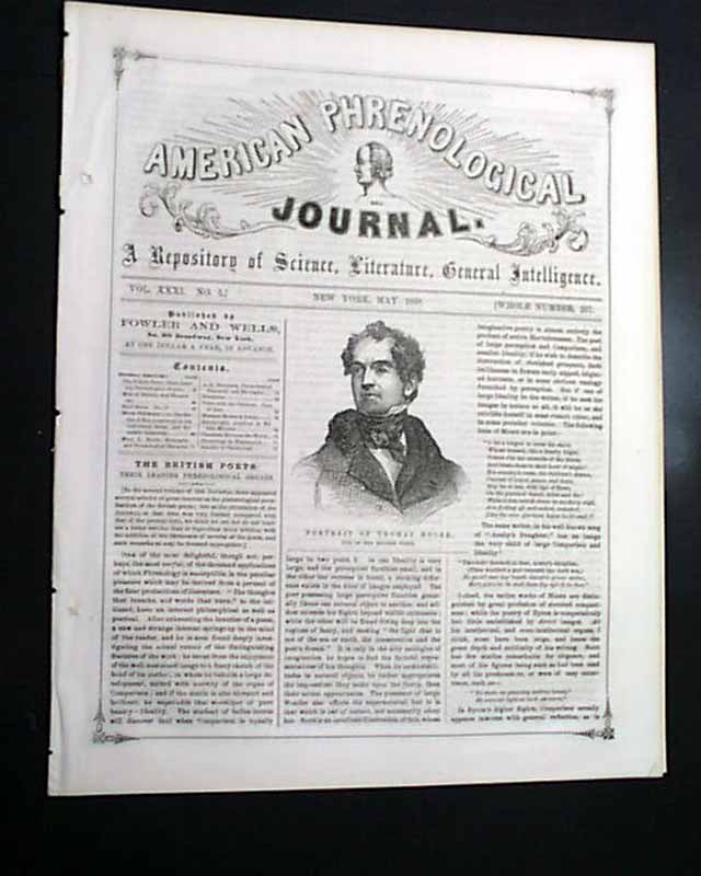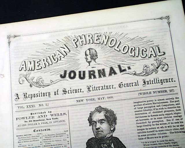 AMERICAN PHRENOLOGICAL JOURNAL, New York, December, 1853 Phrenology is a theory stating that the personality traits of a person can be derived from the shape of the skull. Although holding no validity today, it was a popular science in the mid-19th century and this periodical focused on it.