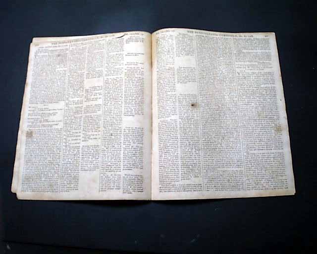 Complete in 8 pages, 9 1/4 by 11 inches. Note: the engraving in the masthead had been cut out, since replaced in photocopy. The reverse of this photocopy (on page 2) is blank. Otherwise the condition is good.