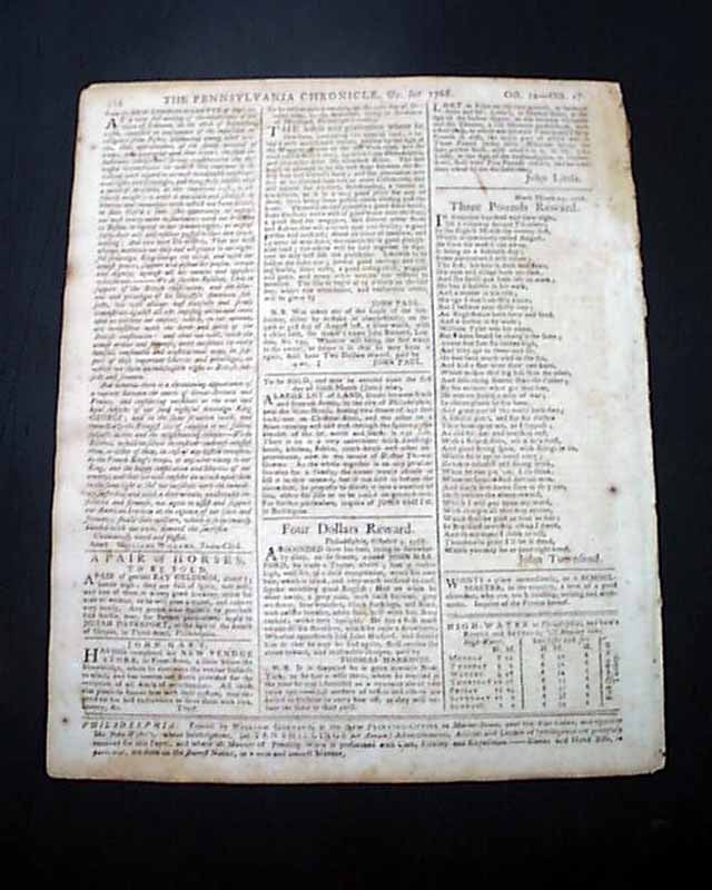 THE PENNSYLVANIA CHRONICLE & UNIVERSAL ADVERTISER, Philadelphia, Sept. 26, 1768