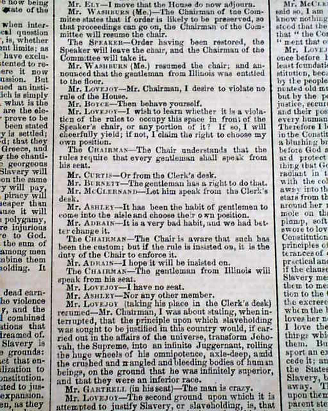 Lovejoy's famous "Barbarism of Slavery" speech in the House...