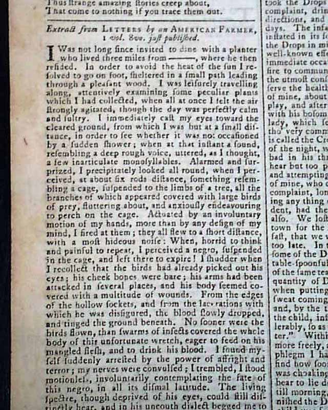 Also on the front page is a letter signed in type by: Anthony Wayne, B.G. concerning the military situation in Georgia. The back page has a half column: "Extract from Letters by an American Farmer" which was recently published.