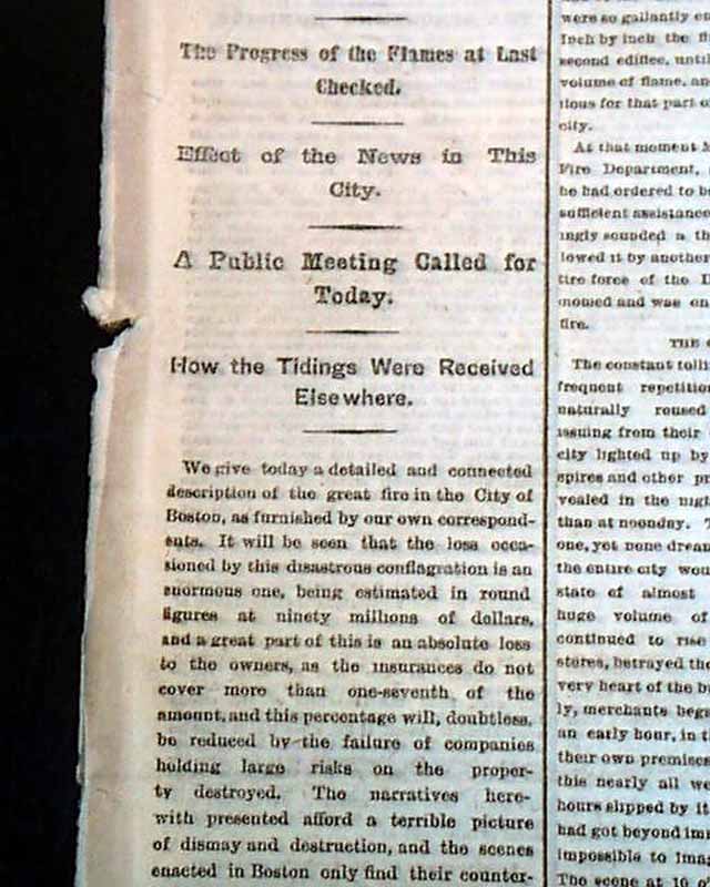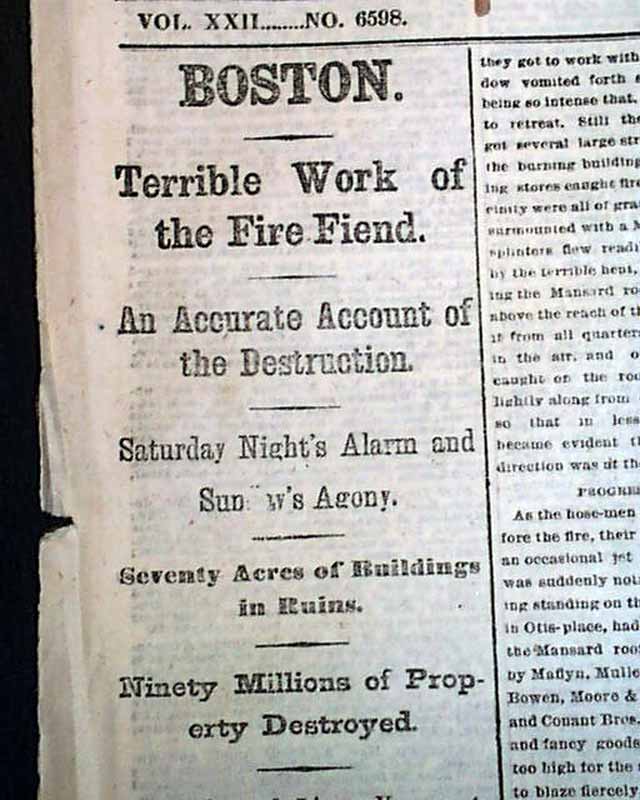 Also nice first column heads including: "BOSTON" "Terrible Work of the Fire Fiend" "An Accurate Account of the Destruction" & much more.