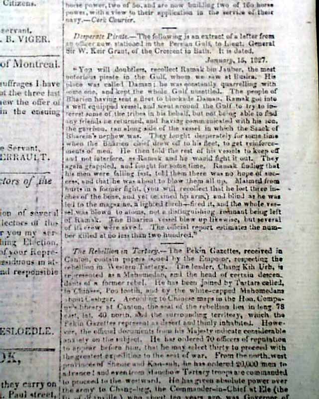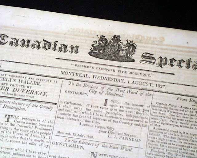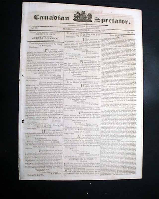 THE CANADIAN SPECTATOR, Montreal, Aug. 1, 1827  A very early Montreal newspaper as we rarely receive such from the 1820's.