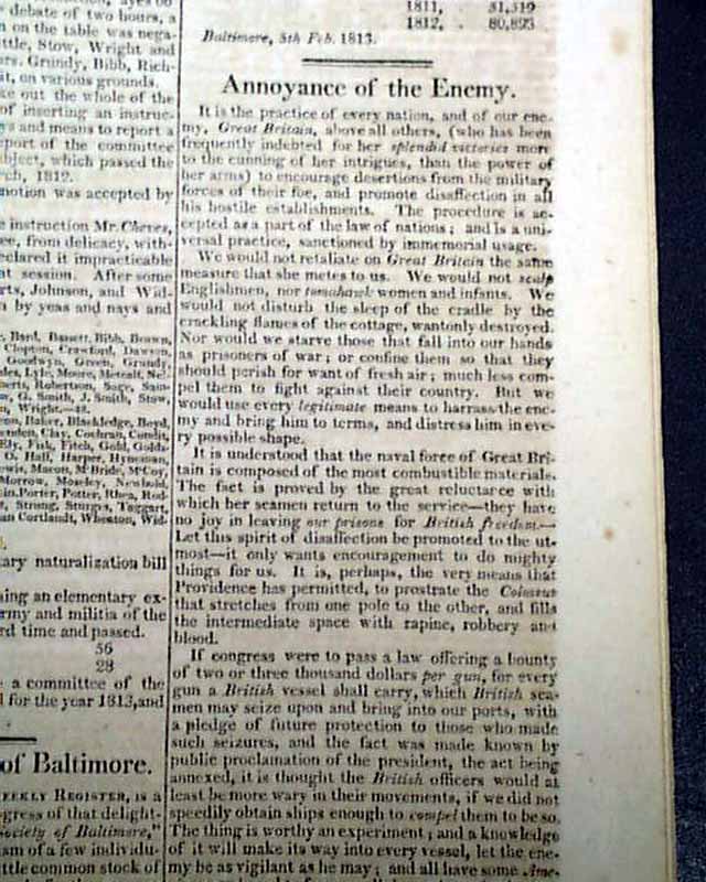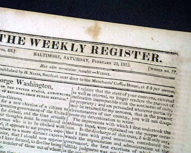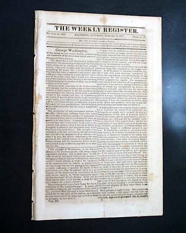 NILES' WEEKLY REGISTER, Baltimore, Feb. 20, 1813 The prime feature would be the nice account of the naval battle between the U.S.S. Constitution and the Java, a victory for the American ship.