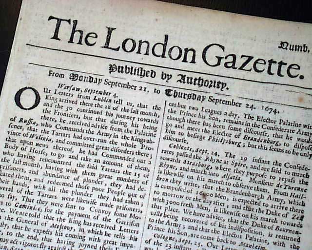 THE LONDON GAZETTE, England, Sept. 24, 1674