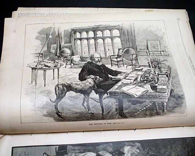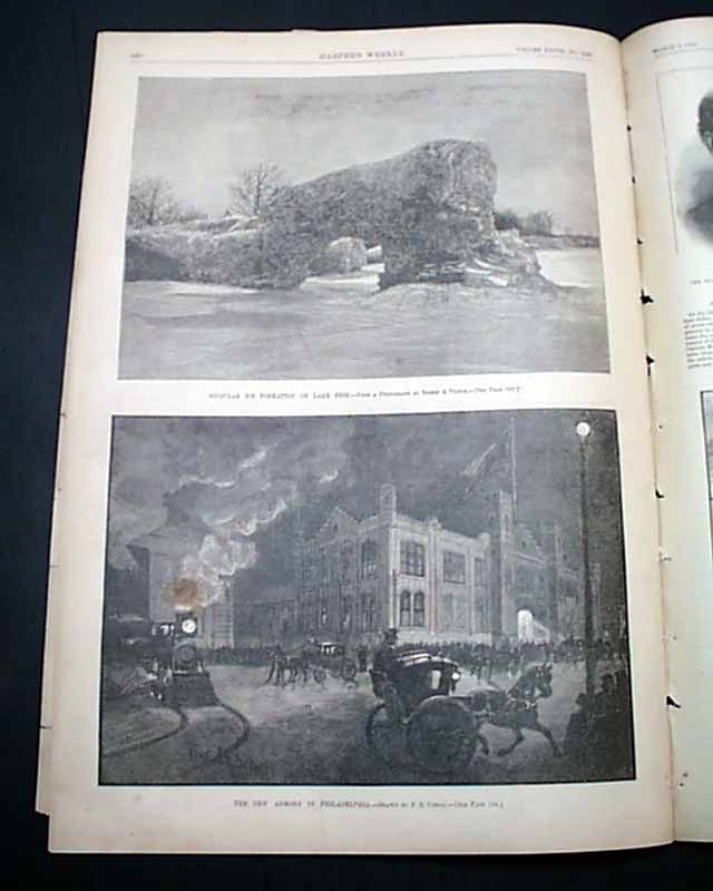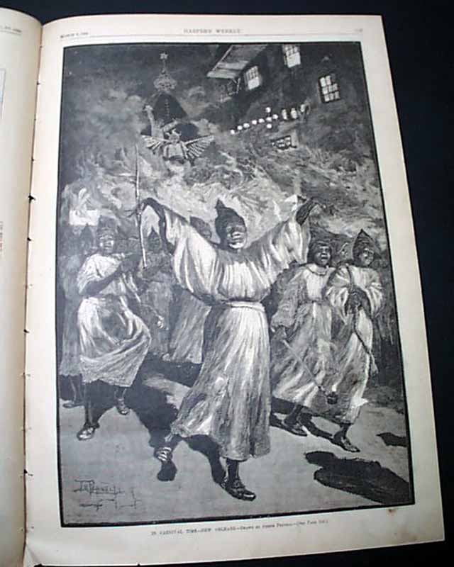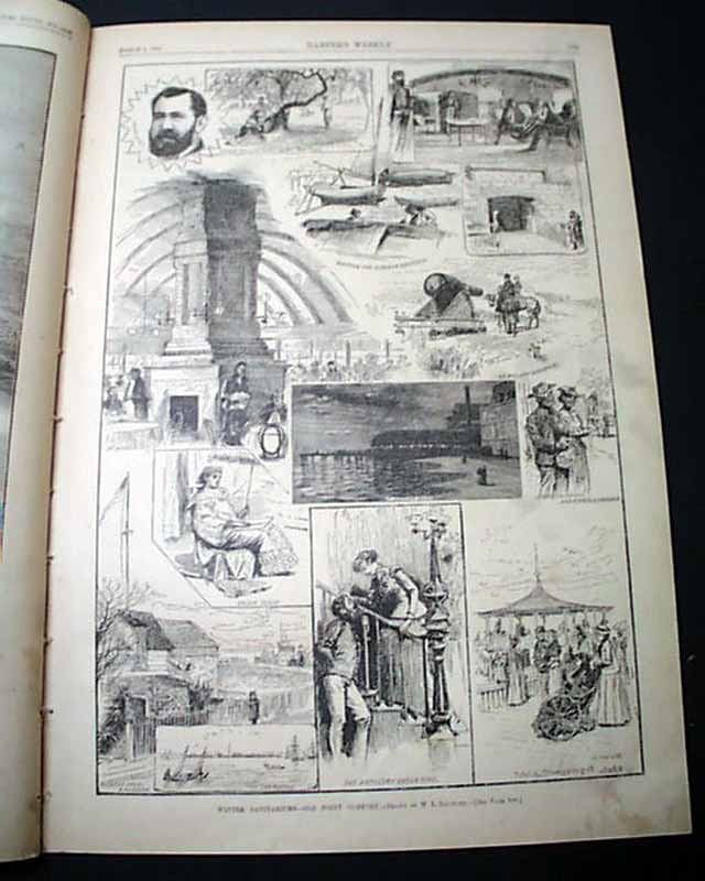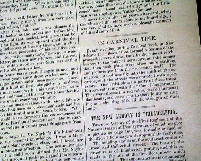 Other nice prints within include a full page of: "Bird's-Eye Map of the Seat of War in the Soudan"; a full page montage of 12 prints captioned: "Winter Sanitariums--Old Point Comfort"; a full page: "Lord Tennyson at Home" a full page: "In Carnival Time--New Orleans", "The New Armory in Philadelphia", "After Clams on Coney Island and a few other prints.