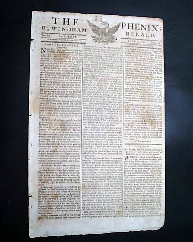 THE PHENIX; OR, WINDHAM HERALD, Windham, Connecticut, June 18, 1791 A very uncommon title with an engraving in the masthead of the legendary phoenix consumed in fire and rising from the ashes. And it's a very early issue as well, volume 1, number 15.