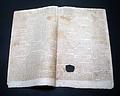 Four pages, a silver dollar-size hole cut from the back leaf does not affect mentioned content, otherwise in good condition.