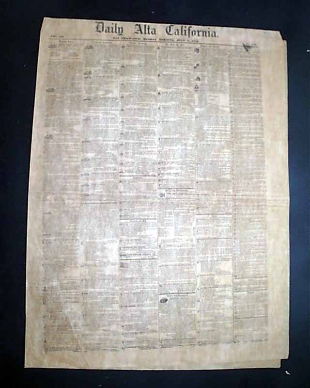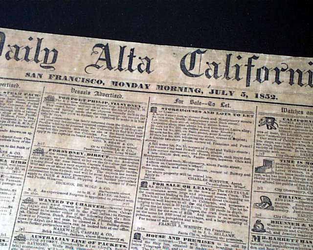 DAILY ALTA CALIFORNIA, San Francisco, July 5, 1852 This is a very early newspaper from California, just 14 months after statehood was achieved.