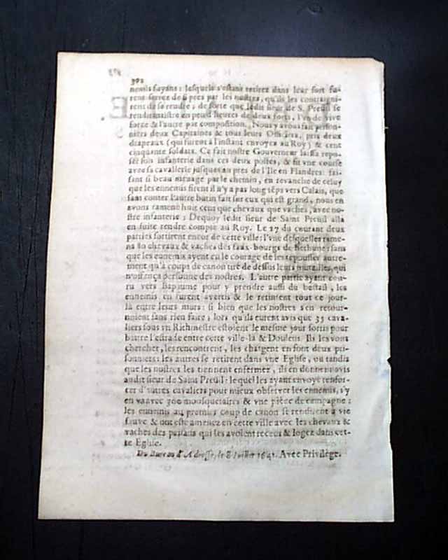 EXTRAORDINAIRE, Paris, France, July 8, 1641 with the date at the top in Roman numerals but then also dated at the bottom of the back page: "8 Juillet, 1641".