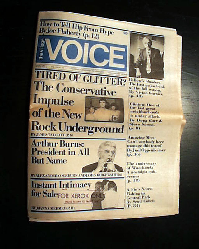 Provenance note: This issue comes from The Village Voice's own archives, part of their in-house collection used to create their digital archive and has never been in circulation. Rare as such.
