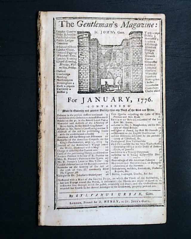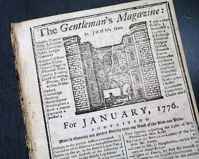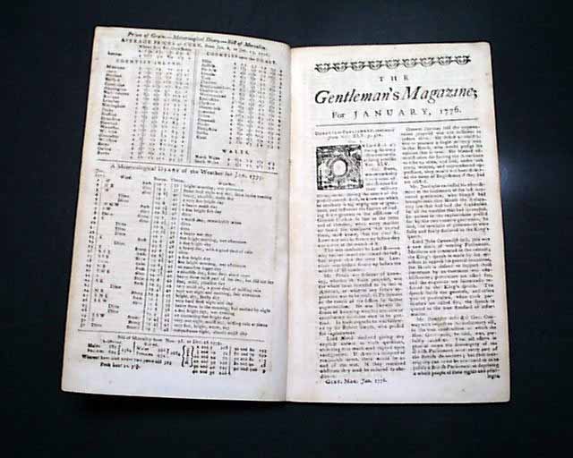 THE GENTLEMAN'S MAGAZINE, London, January, 1776 This is a fine issue from this significant year of the Revolutionary War, with much war-related content.