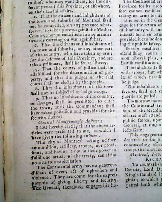 His full proclamation can be seen in the photos, with the significant portion including: "...And I do hereby farther declare all indented servants, Negroes, or others (appertaining to rebels) free, that are able & willing to bear arms, they joining his Majesty's troops as soon as may be, for the more speedily reducing this colony to a proper sense of their duty..." with more. Additionally, this report includes: "...The troops from Bunker's Hill went into winter quarters a very few days before I quitted Boston...A letter from Rhode Island gives an account of a plundering party of cruizers..." and much more.
