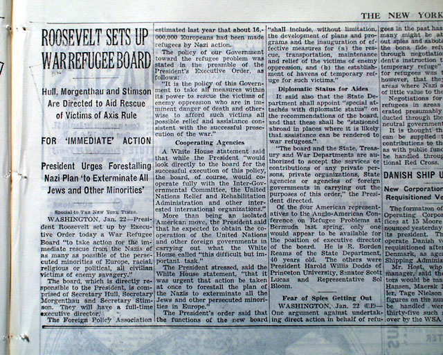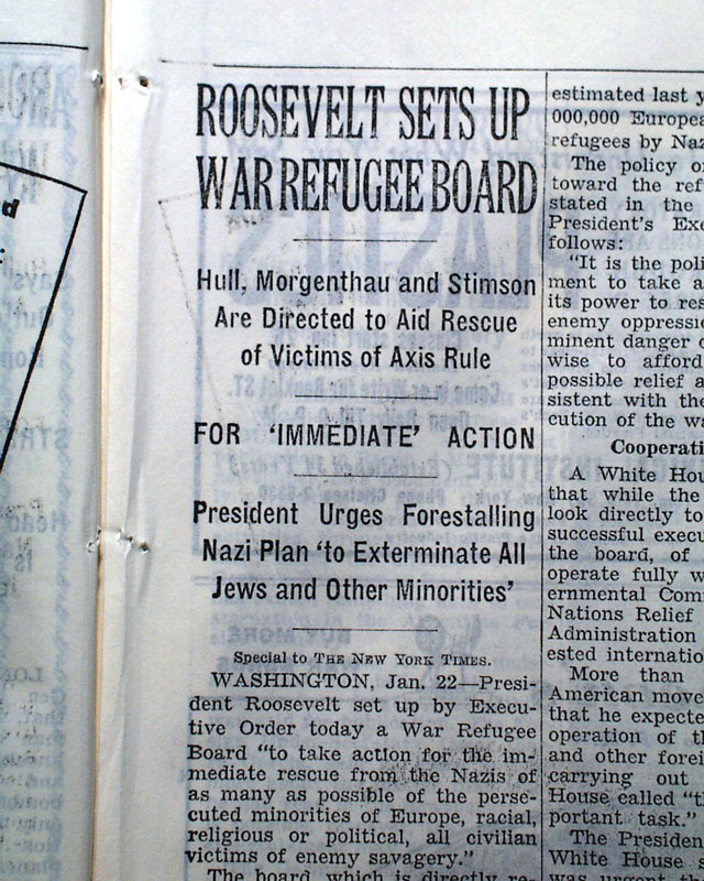 Page 11 has a 1 column heading: "ROOSEVELT SETS UP WAR REFUGEE BOARD", with subhead: "FOR 'IMMEDIATE' ACTION".
