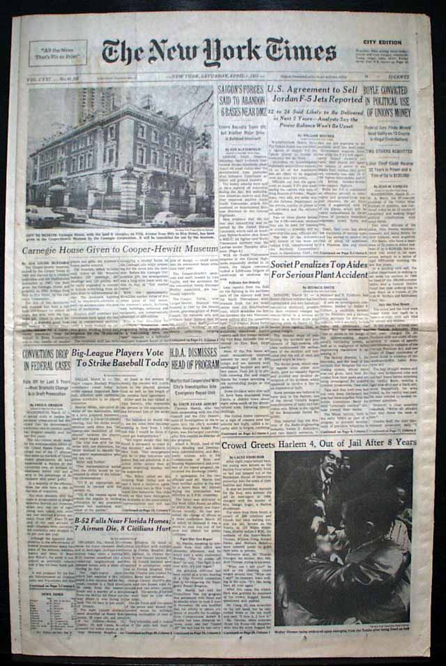 " Harlem Four" released... MLB 1st collective players' strike starts...