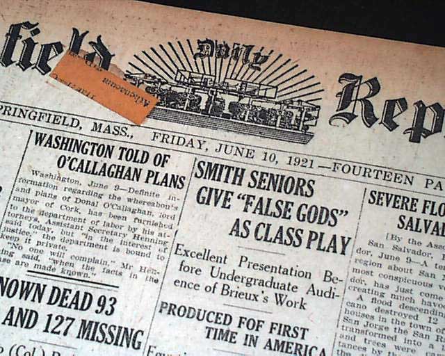 SPRINGFIELD REPUBLICAN, Massachusetts, June 10, 1921  The sports page (page 10) has a very intriguing report on the early career of famed baseball player Lou Gehrig. See the paragraph below from Wikipedia on how he used an assumed name to (illegally) play early baseball:
