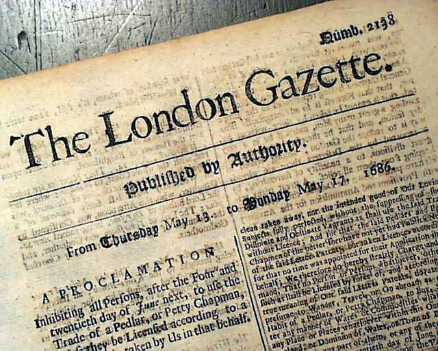 Most of the front page is taken up with: "A Proclamation" which enforces the use of a license to be a peddler.