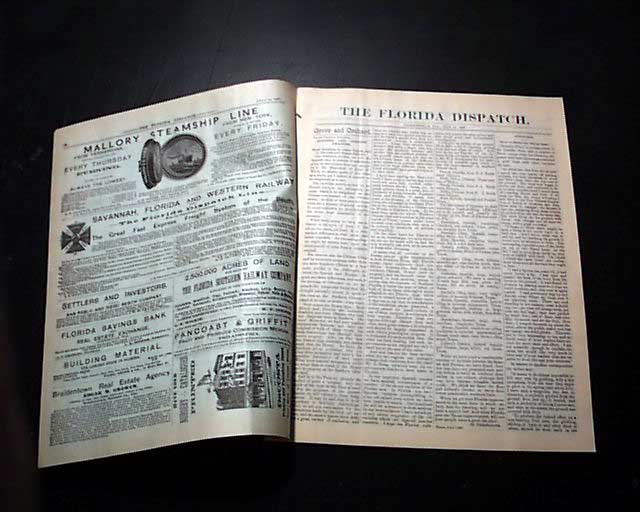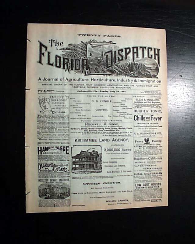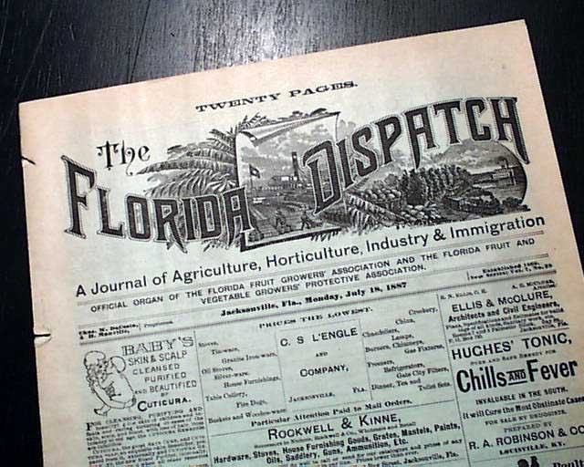 THE FLORIDA DISPATCH, Jacksonville, July 18, 1887  Noted in the masthead: "Official Organ Of The Florida Fruit Growers' Assoc. & the Florida Fruit & Vegetable Growers' Protective Assoc." with the content, and the ads, focused on such.
