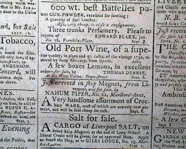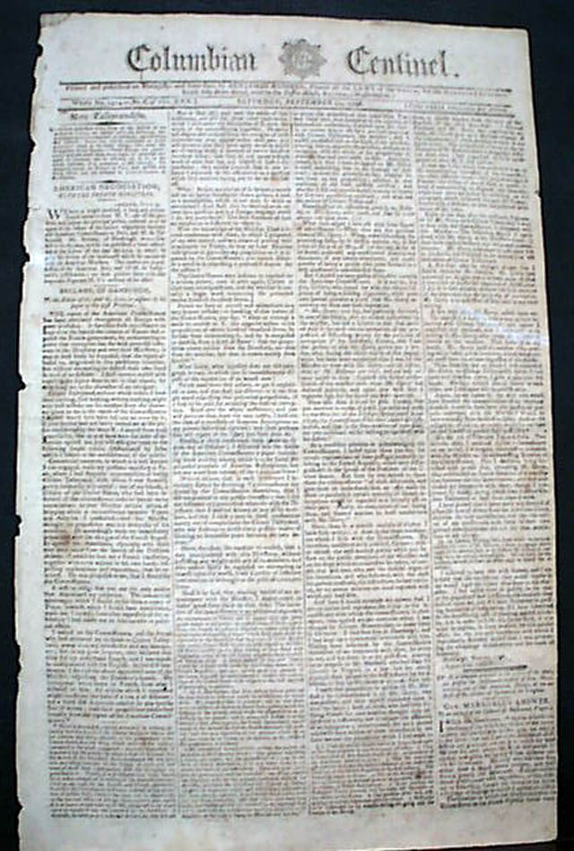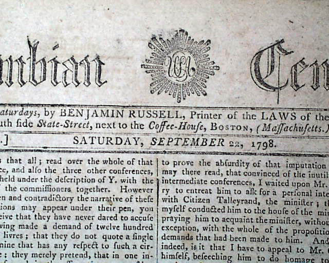 COLUMBIAN CENTINEL, Boston Sept. 22, 1798