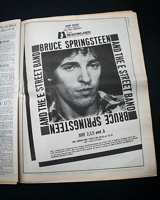 Page 87 has a full page advertisement for upcoming concerts by "BRUCE SPRINGSTEEN" at the Meadowlands Arena. (see image)