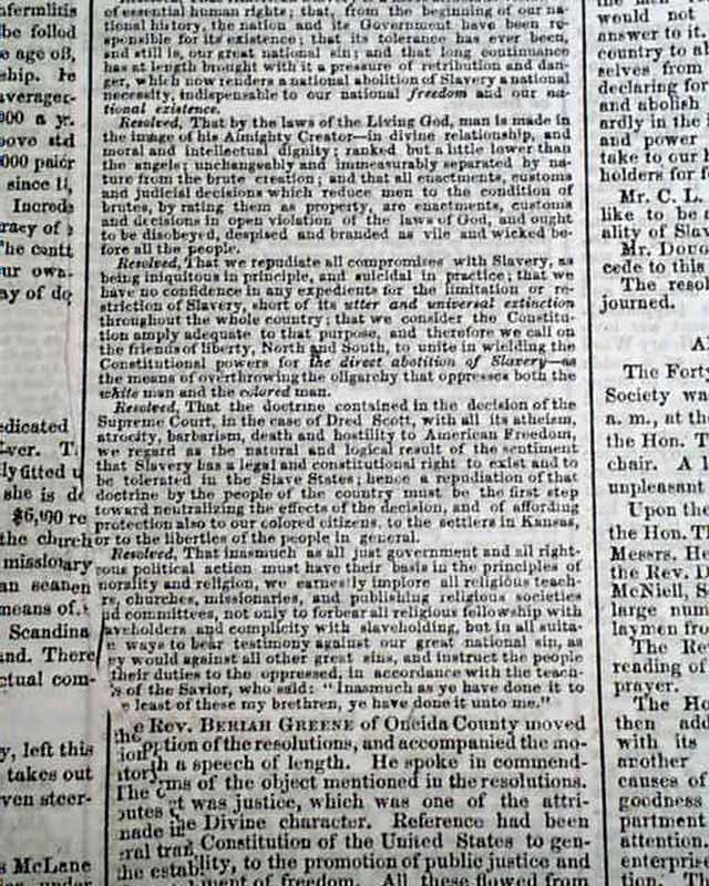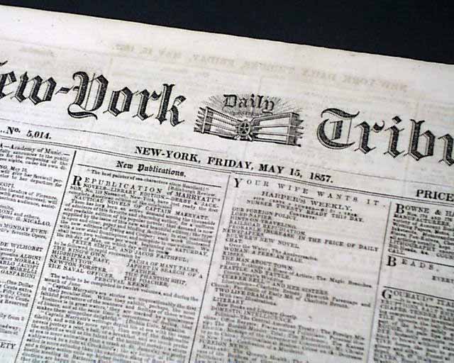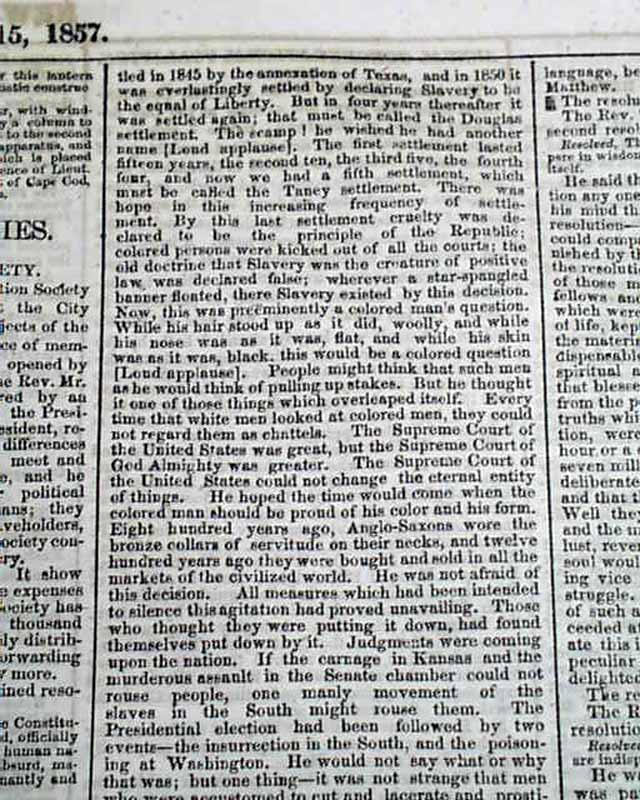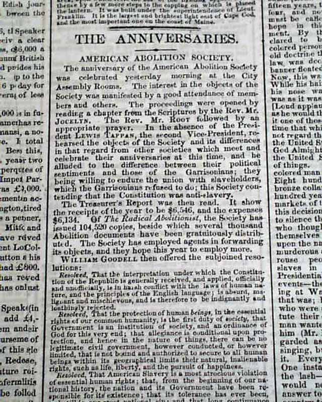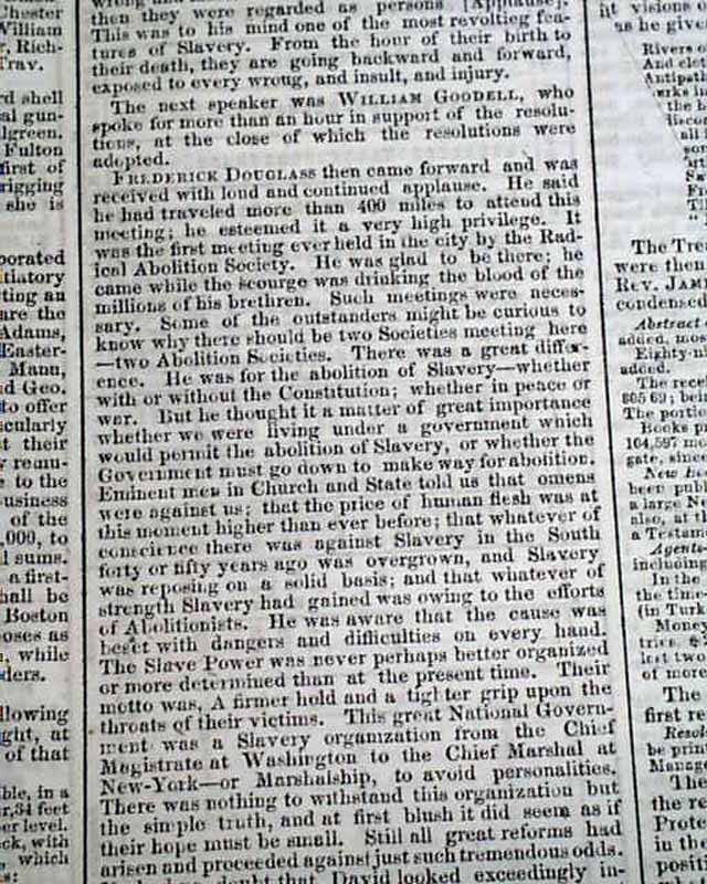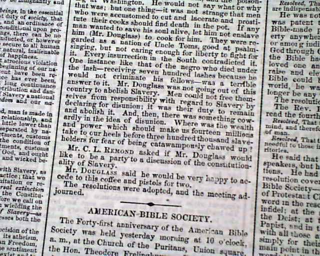 NEW-YORK DAILY TRIBUNE, May 15, 1857  Page 6 has: "AMERICAN ABOLITION SOCIETY", which provides details of the gathering for their 41st anniversary. Most notable is the complete text of what is now identified as Frederick Douglass's "Colored Men's Rights in This Republic"