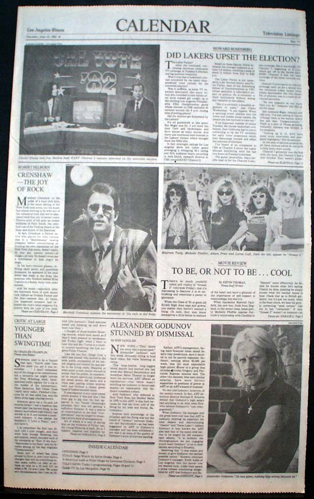 LOS ANGELES TIMES, June 10, 1982 (Front and Calendar Sections)