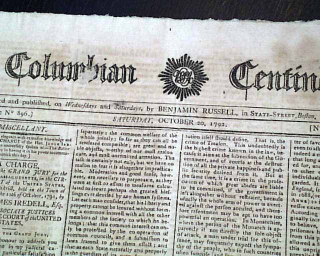 COLUMBIAN CENTINEL, Boston, October 20, 1792  A page 2 report under "Pennsylvania" is datelined Philadelphia and reports: "The elegance of the new building, now preparing for the use and accommodations of the President of the United States certainly very far exceed every thing of the kind that has hitherto been attempted in the country..." and more (see).