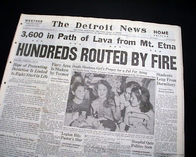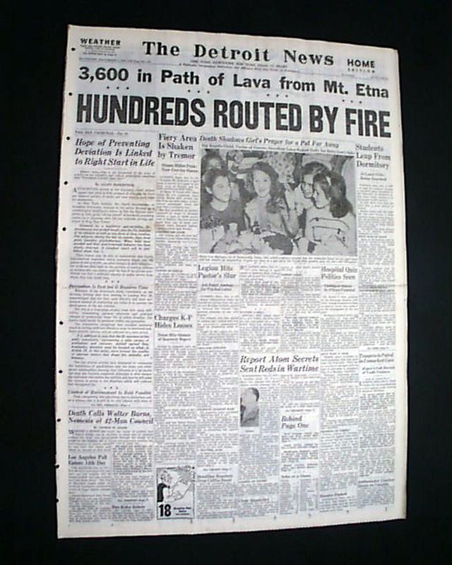 The front page has a banner headline announcing: "HUNDREDS ROUTED BY FIRE" with subheads. (see images) Nice for display.