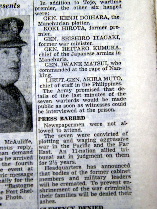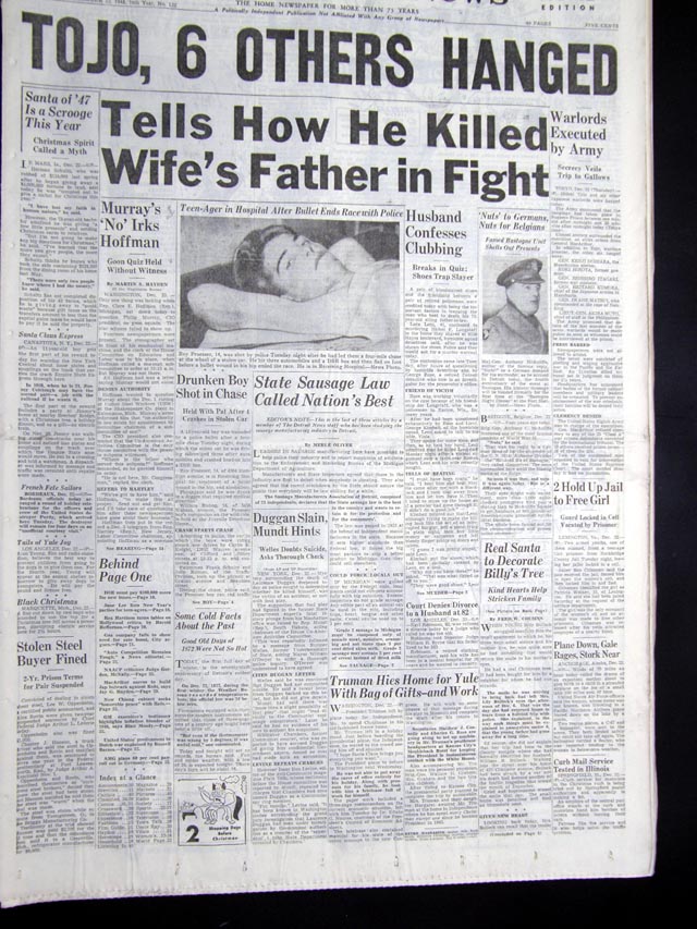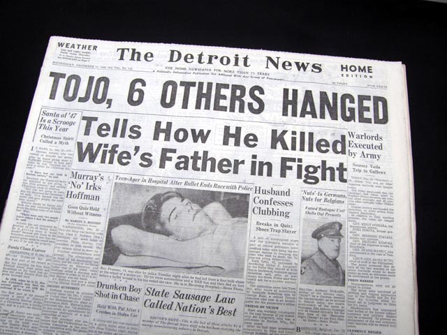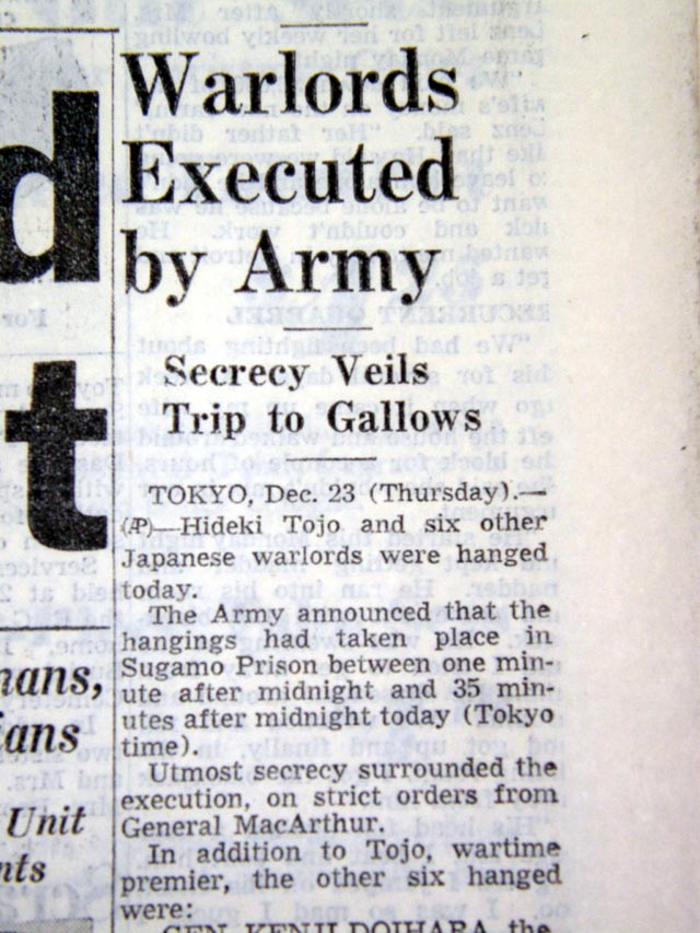 * Hideki "Razor" Tojo hanged (early 1st report)