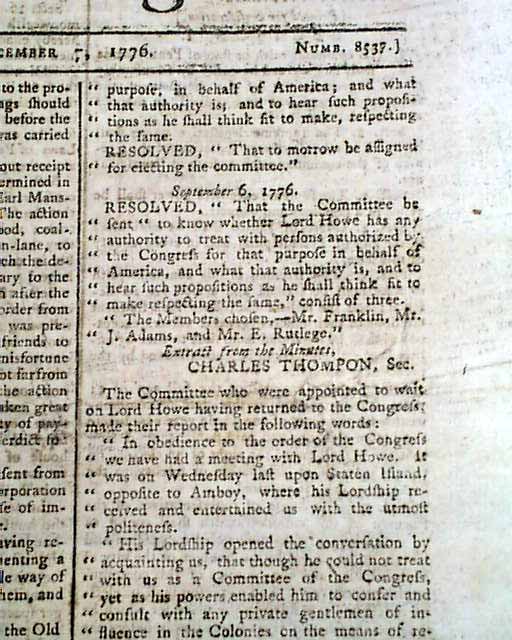 The ftpg. has a very historic report concerning the attempts to find a peace between American and England. The peace conference happened on September 11 on Staten Island called by British General Howe. John Adams, Benjamin Franklin and Edmund Rutledge were the American representatives. But the meeting was for naught as Howe demanded a revocation of the Declaration of Independence, which the American were not willing to give up.