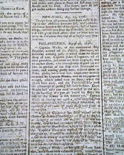 Nice to have a period newspaper dated in 1776.