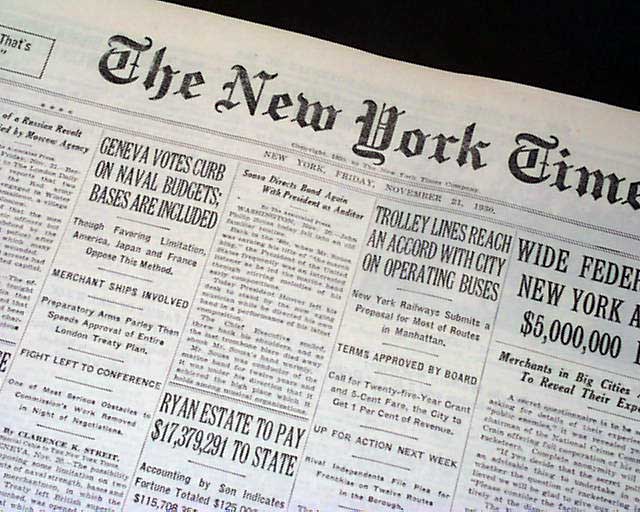 Other news, sports and advertisements of the day. Complete in 52 pages, this is the rare rag edition that was produced on very high quality newsprint, with a high percentage of cotton & linen content, allowing the issues to remain very white & sturdy into the present. Given the subscription cost, libraries & institutions rather than individuals were the primary subscribers of these high-quality editions. Nice condition.