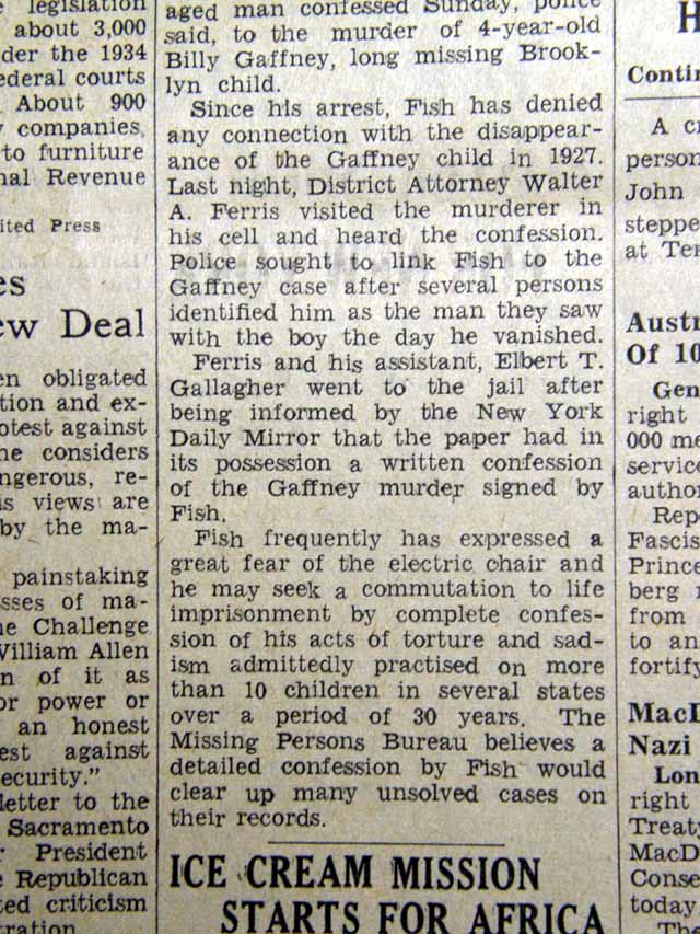 AI notes: Albert Fish, the notorious American serial killer, child rapist, and cannibal, was sentenced to death on March 25, 1935, in New York. He had been convicted of the murder of 10-year-old Grace Budd, whose abduction and murder had horrified the public. Fish’s crimes were infamous for their sadistic and grotesque nature, including letters he sent to the families of his victims detailing his acts. After his sentencing, he was executed by electric chair at Sing Sing Prison on January 16, 1936. His case remains one of the most chilling examples of early 20th-century American criminal history.