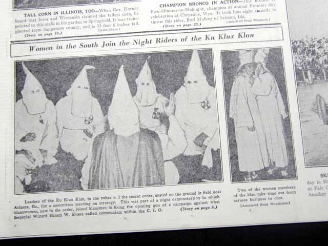 The bottom of the back page has two photos with heading: "Women in the South Join the Night Riders of the Ku Klux Klan" with text.